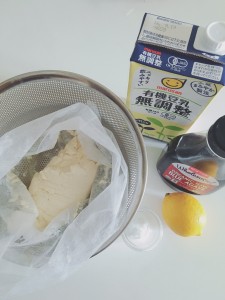豆乳で作る簡単レモン風味のビーガンチーズ< Easy lemon flavor of vegan cheese made from soy milk>